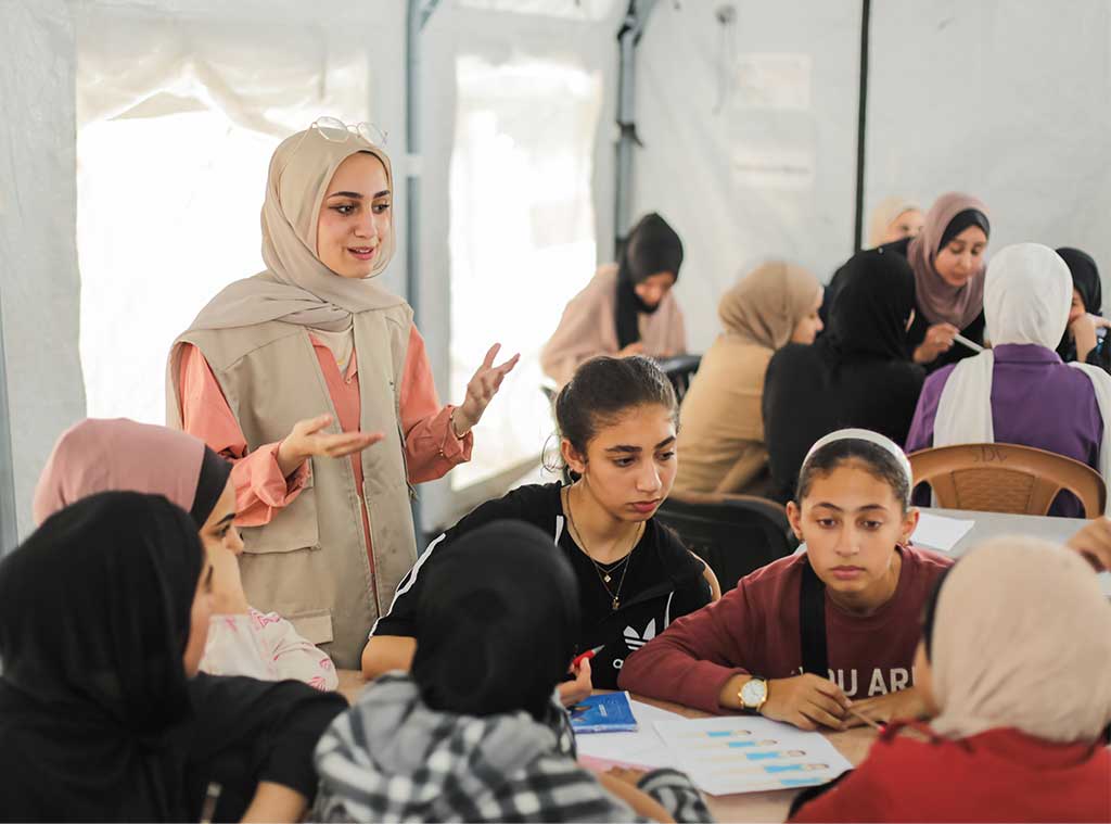 فريق من المتطوعين المتحمّسين لدعم اليافعين والأطفال، وزيادة التوعية، وتصميم المُبادرات المجتمعية التي تُقدّم أثرًا ملموسًا في الحياة اليوميّة في قطاع غزّة.